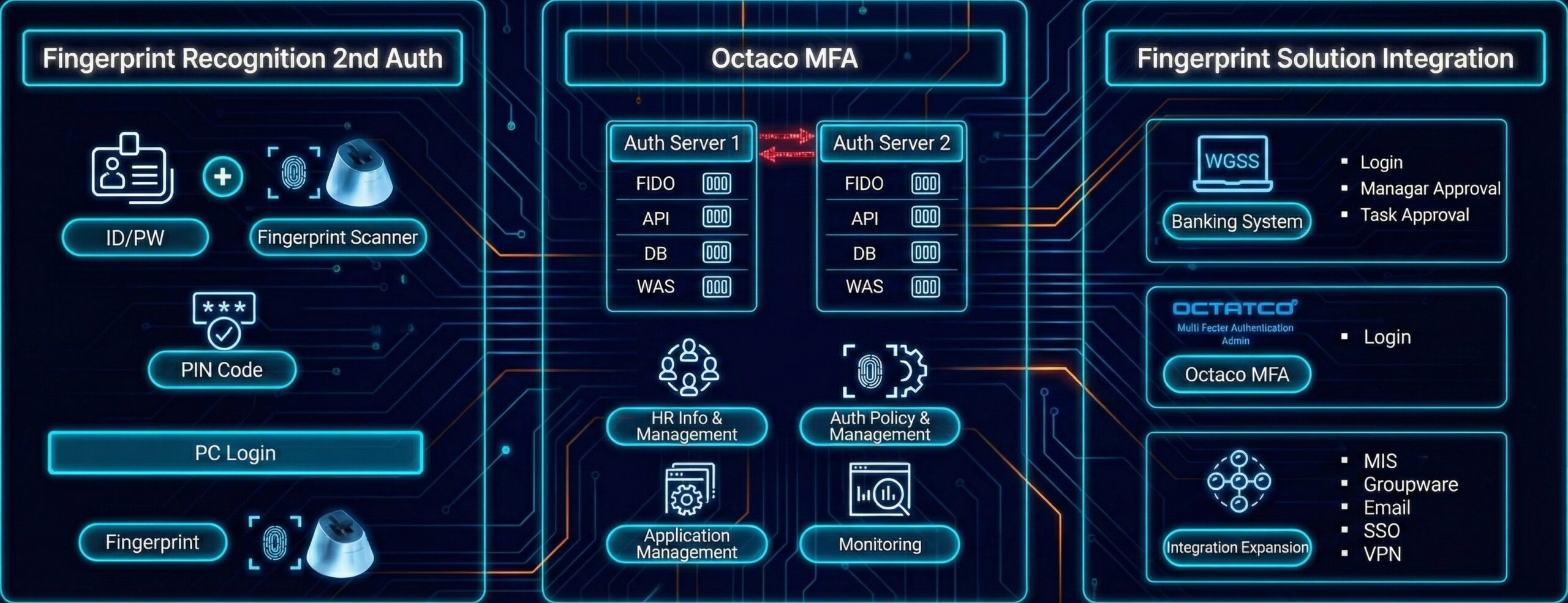 OctacoMFA is Korea’s only platform-based passwordless user authentication service that supports the latest FIDO2 mobile biometric authentication, PC biometric authentication, and FIDO security key biometric authentication all on a single platform.