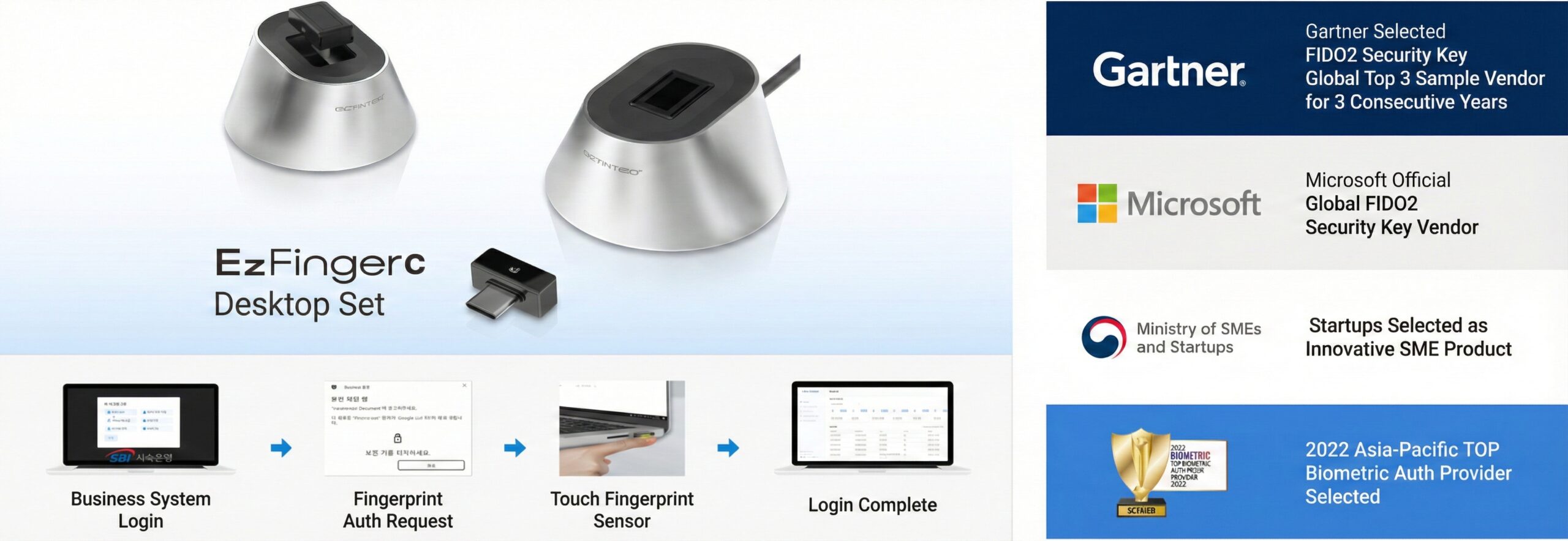 The Ezfinger fingerprint security key series combines FIDO2 and Windows Hello technologies to provide convenient access to PC login, MS365, and Entra ID authentication, as well as over 2,000 global services such as Gmail and Salesforce, without installing separate software.