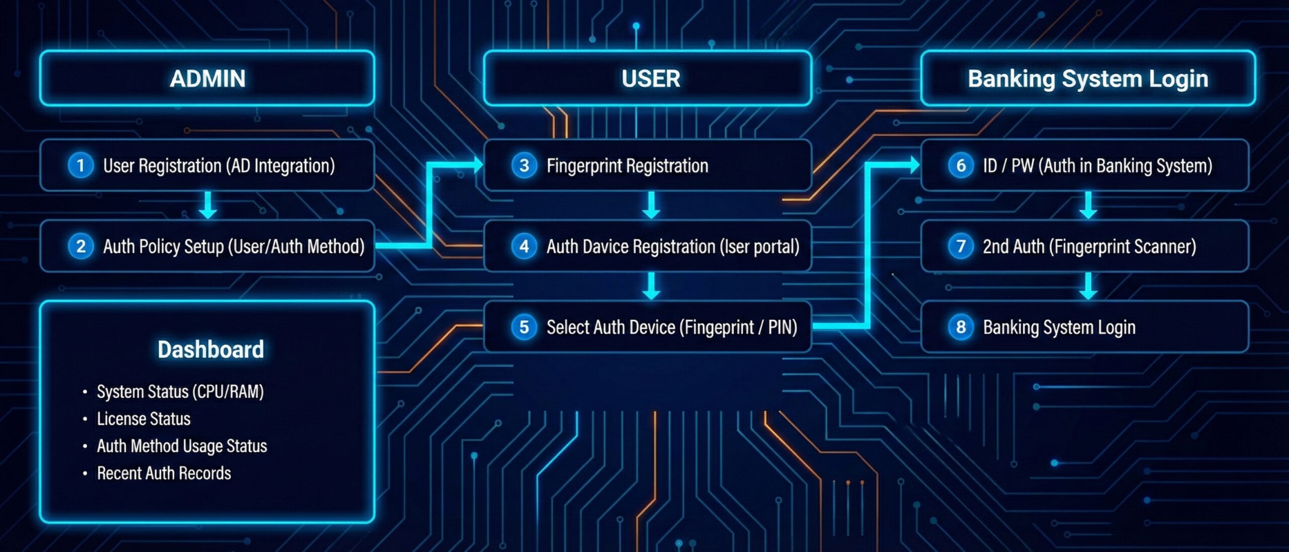 Unlike general biometric authentication, it authenticates various factors simultaneously, including the user’s biometrics, Ezfinger device information, and IP information, maintaining high security in diverse environments.